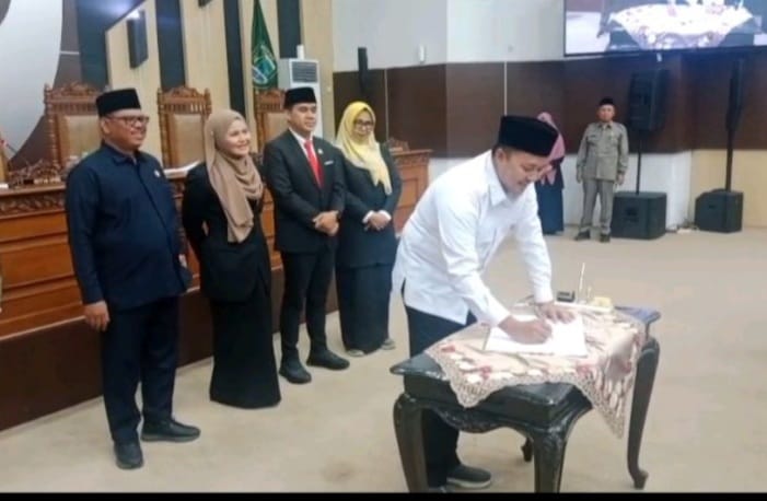 Pengesahan Raperda APBD tersebut ditandai dengan ketok palu oleh Ketua DPRD Kabupaten Pasuruan, Samsul Hidayat sekaligus penandatanganan berita acara pengesahan melalui Rapat Paripurna di Gedung DPRD Kabupaten Pasuruan, Rabu (26/11/2025).